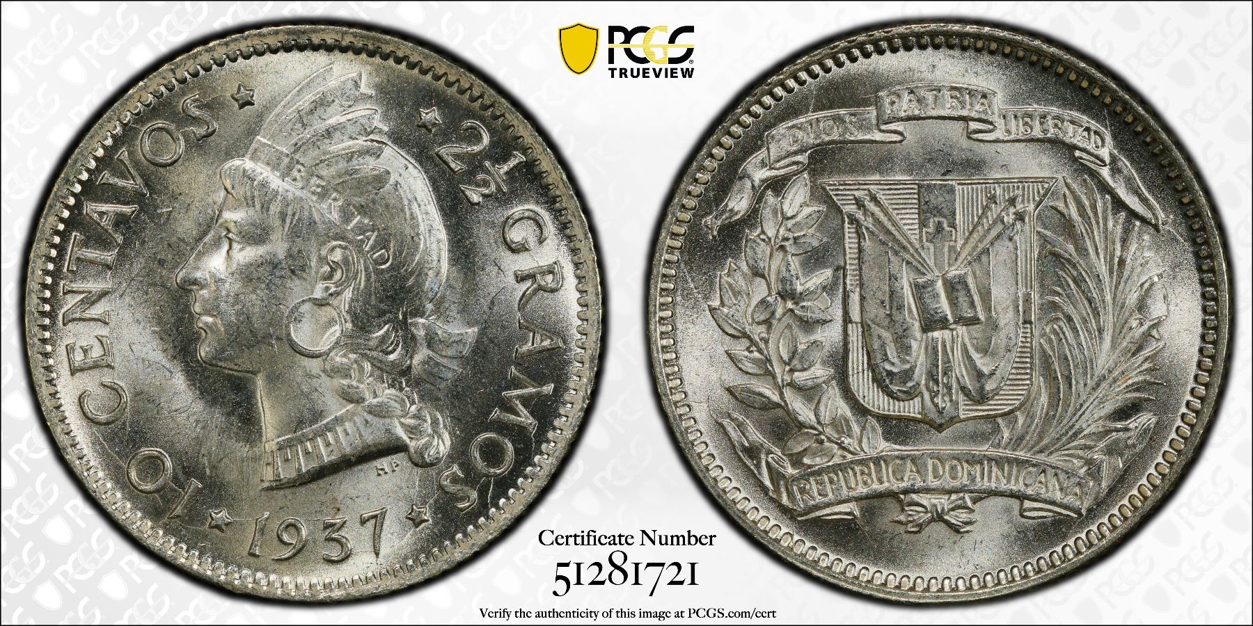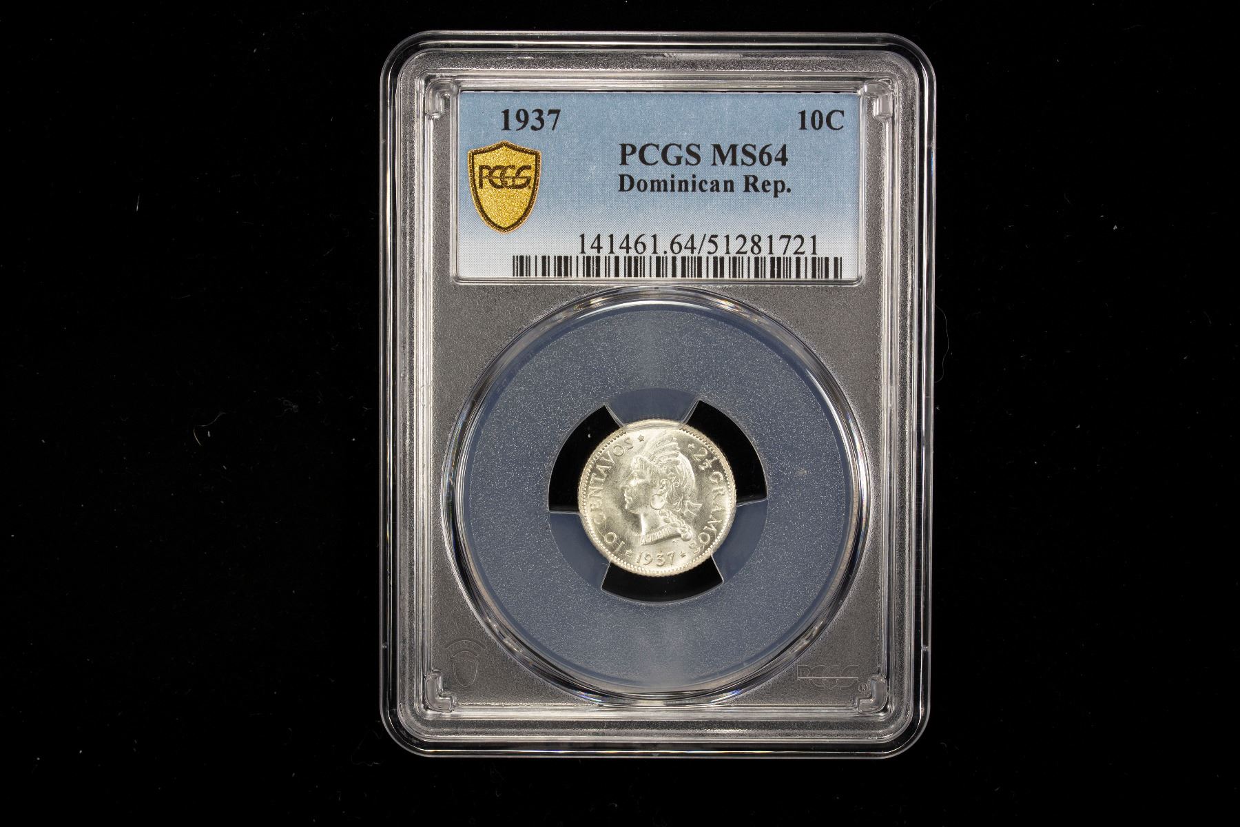 DOMINICAN REPUBLIC: AR 10 centavos, 1937, KM-19, a wonderful lustrous example! PCGS graded MS64.