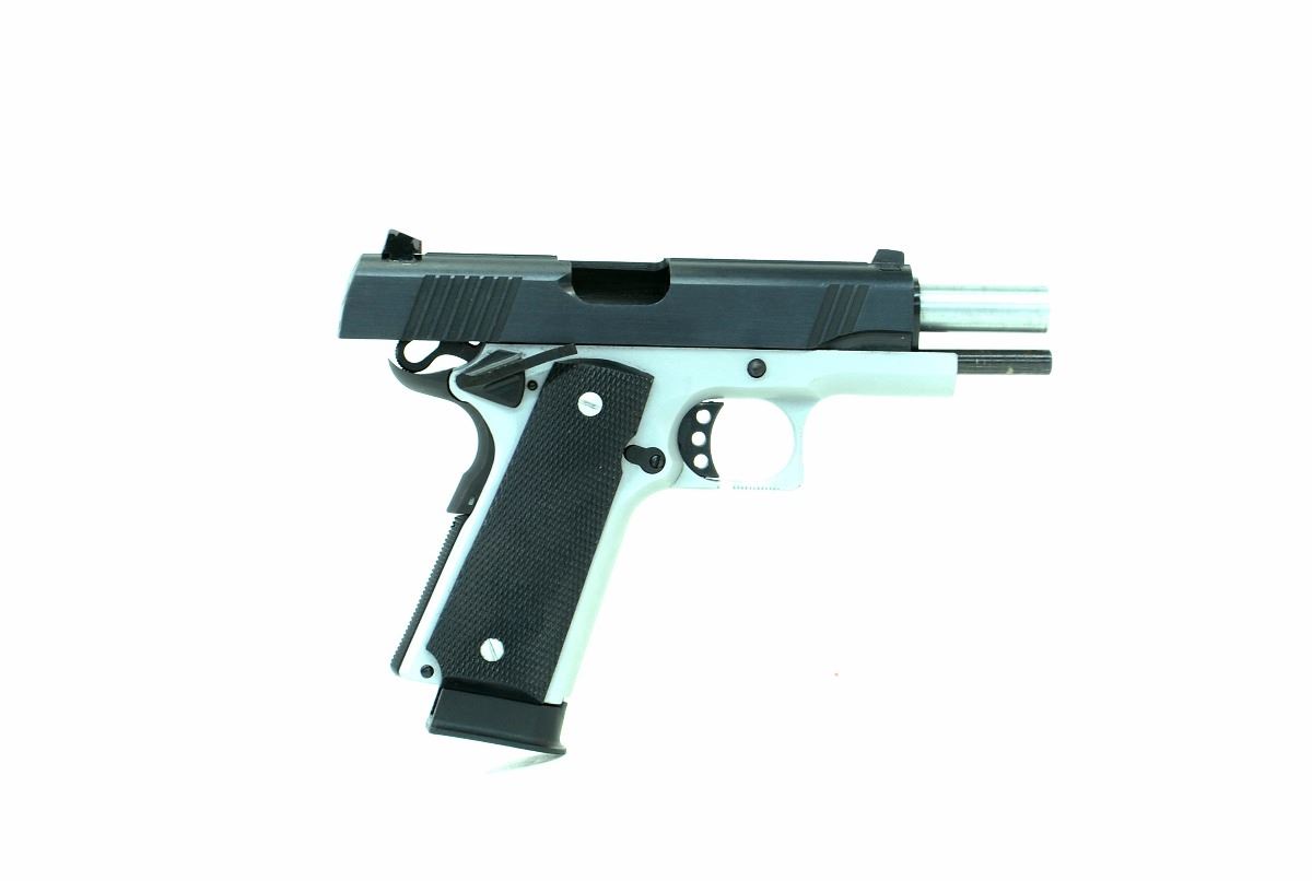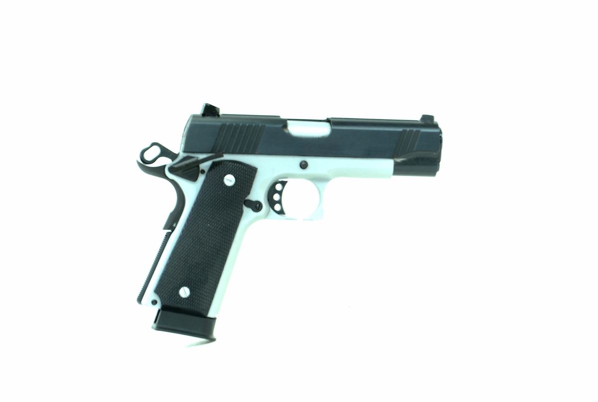 STOCK 2266-0543 G1, DOMINION ARMS, MODEL NP27, CAL 45ACP, BARREL LENGTH 110MM, COMES WITH CASE 3 MAGS, ADJUSTABLE TARGET SIGHTS, RUBBER GRIPS, BRUSHED STAINLESS FRAME, CONDITION 9/10, SN. BC06XXX