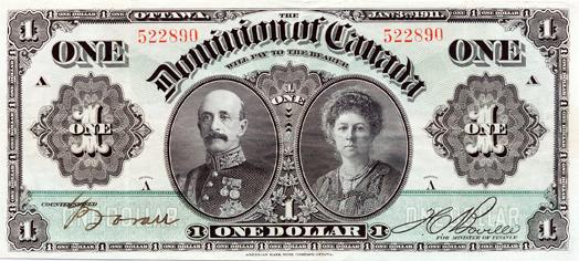 DOMINION OF CANADA. $1.00. Jan. 3, 1911. DC-18a. No. 522890/A. Green Line. A bright Fine.