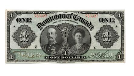 DOMINION OF CANADA. $1.00. Jan. 3, 1911. DC-18a. No. 733327/A. Green line. Extra Fine.