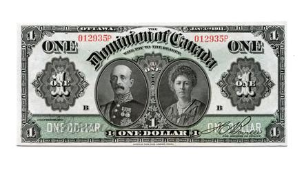 DOMINION OF CANADA. $1.00. Jan. 3, 1911. DC-18d. No. 012935P/B. Black Line. PMG graded Unc-64. A choice example.