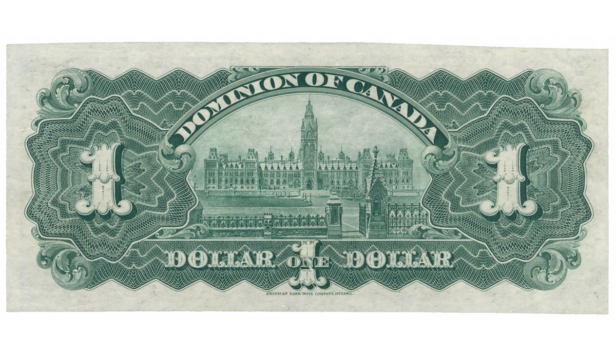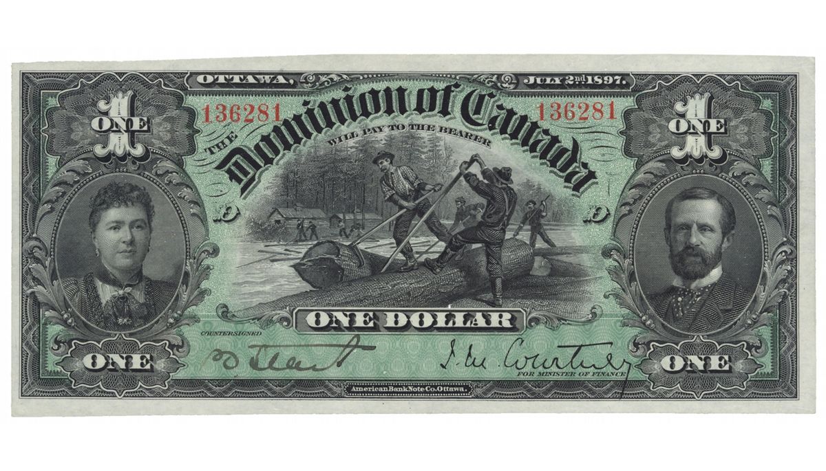 DOMINION OF CANADA. $1.00. July 2, 1897. DC-12. Signed Courtney. Green tint. No. 136281/D. BCS graded Original AU-50.