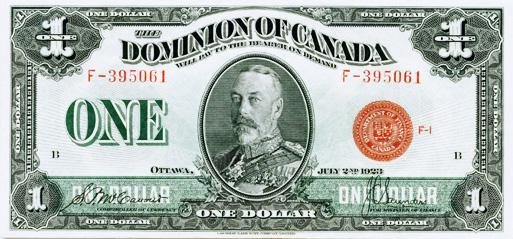 DOMINION OF CANADA. $1.00. July 2, 1923. DC-25b. Red Seal. No.F395061/B. McCavour-Saunders. PMG graded Extra Fine-45.