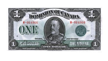 DOMINION OF CANADA. $1.00. July 2, 1923. DC-25d. McCavour-Saunders. Green Seal. No. M-064966/A. PCGS graded CH Unc-63. PPQ.