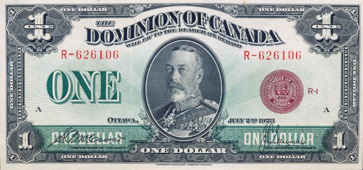 DOMINION OF CANADA. $1.00. July 2, 1923. DC-25e. No. R-626106/A. Bronze Seal. PCGS graded AU-53.