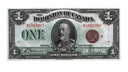 DOMINION OF CANADA. $1.00. July 2, 1923. DC-25i. McCavour-Saunders. Bronze Seal. No. B1805907. PMG graded Gem Unc-66. EPQ.