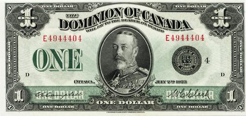 DOMINION OF CANADA. $1.00. July 2, 1923. DC-25o. Black Seal. No. E4944404. PMG graded Unc-64. EPQ.