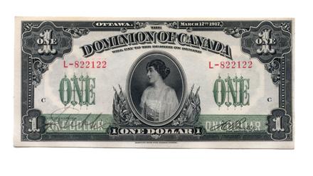 DOMINION OF CANADA. $1.00. March 17, 1917. DC-23a-ii. Boville, right. No. L-822122/C. A choice