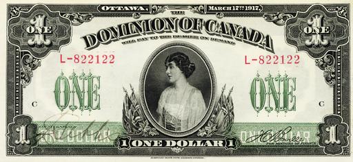 DOMINION OF CANADA. $1.00. March 17, 1917. DC-23a-ii. No Seal. Boville. No. L0822122/C. A bright and Choice AU.