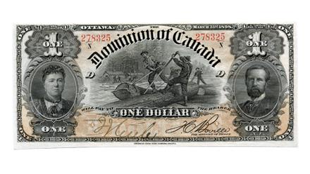 DOMINION OF CANADA. $1.00. March 31, 1898. DC-13c. No. 278325/D. PCGS graded AU-55. PPQ. A superb example with great colours and brightness.