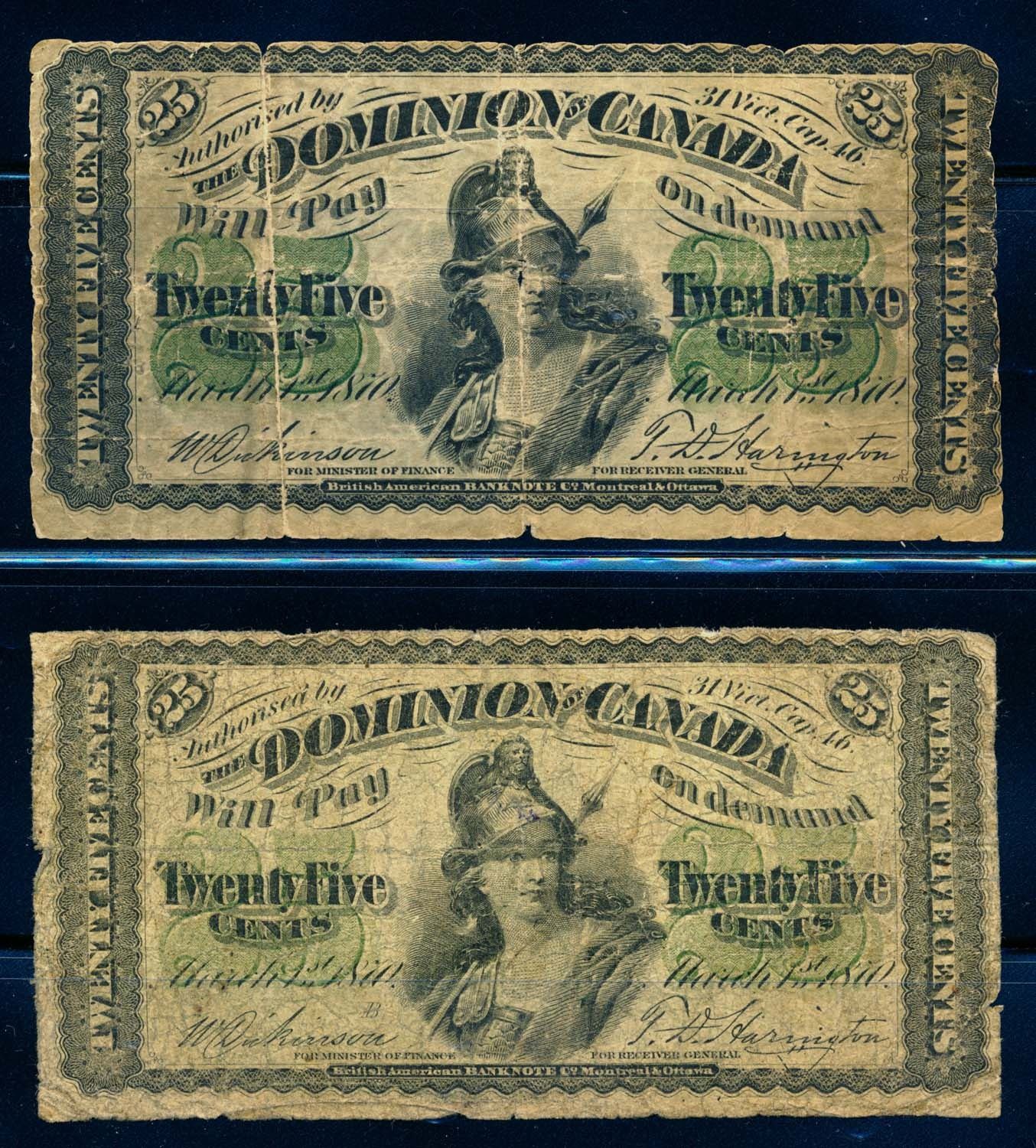 DOMINION OF CANADA 1870 25 Cents Large B & -1c, DC-1b. Graded: VG & G.