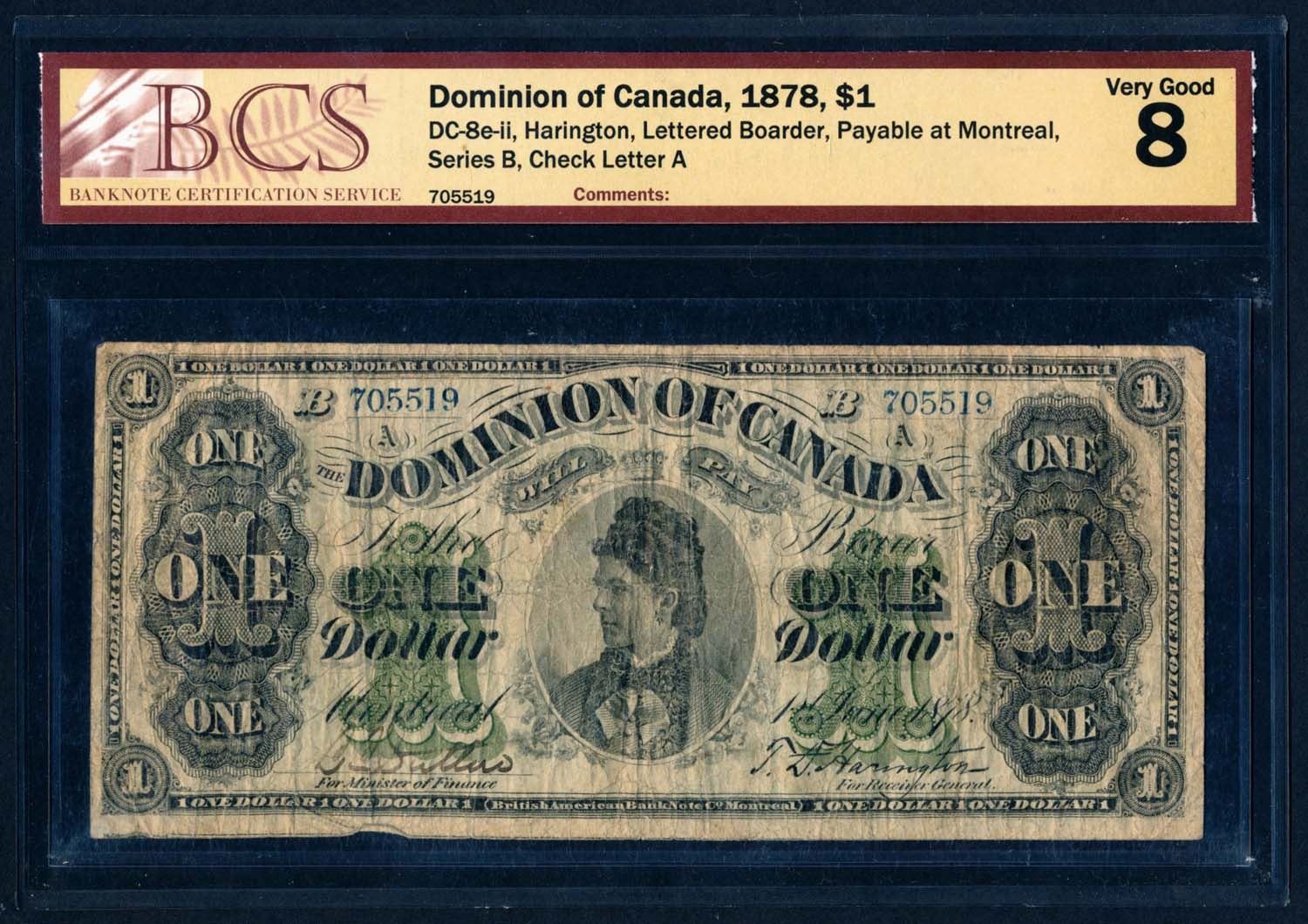 DOMINION OF CANADA 1878 $1.00, DC-8e-ii Very Good-8 Payable at Montreal