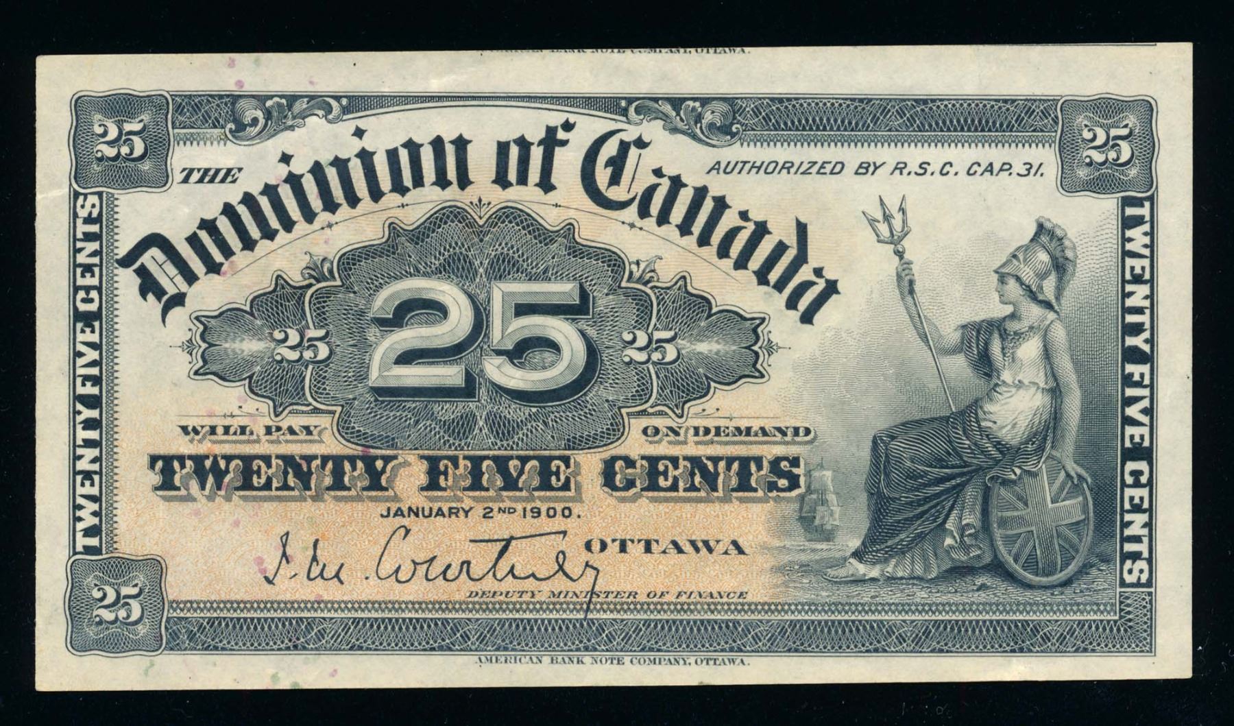 DOMINION OF CANADA 1900 25 Cents, DC-15a, Countney. Graded: AU