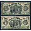 DOMINION OF CANADA 1911 $1.00. A Pair of Low Grade Banknotes. VG+