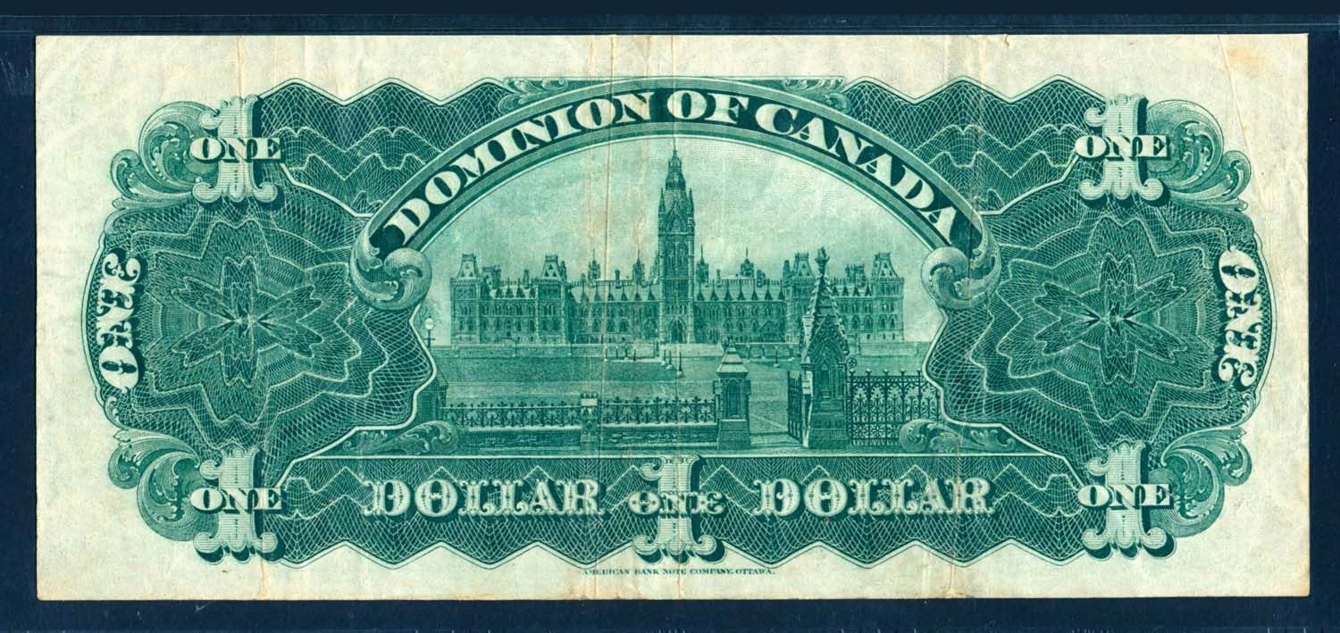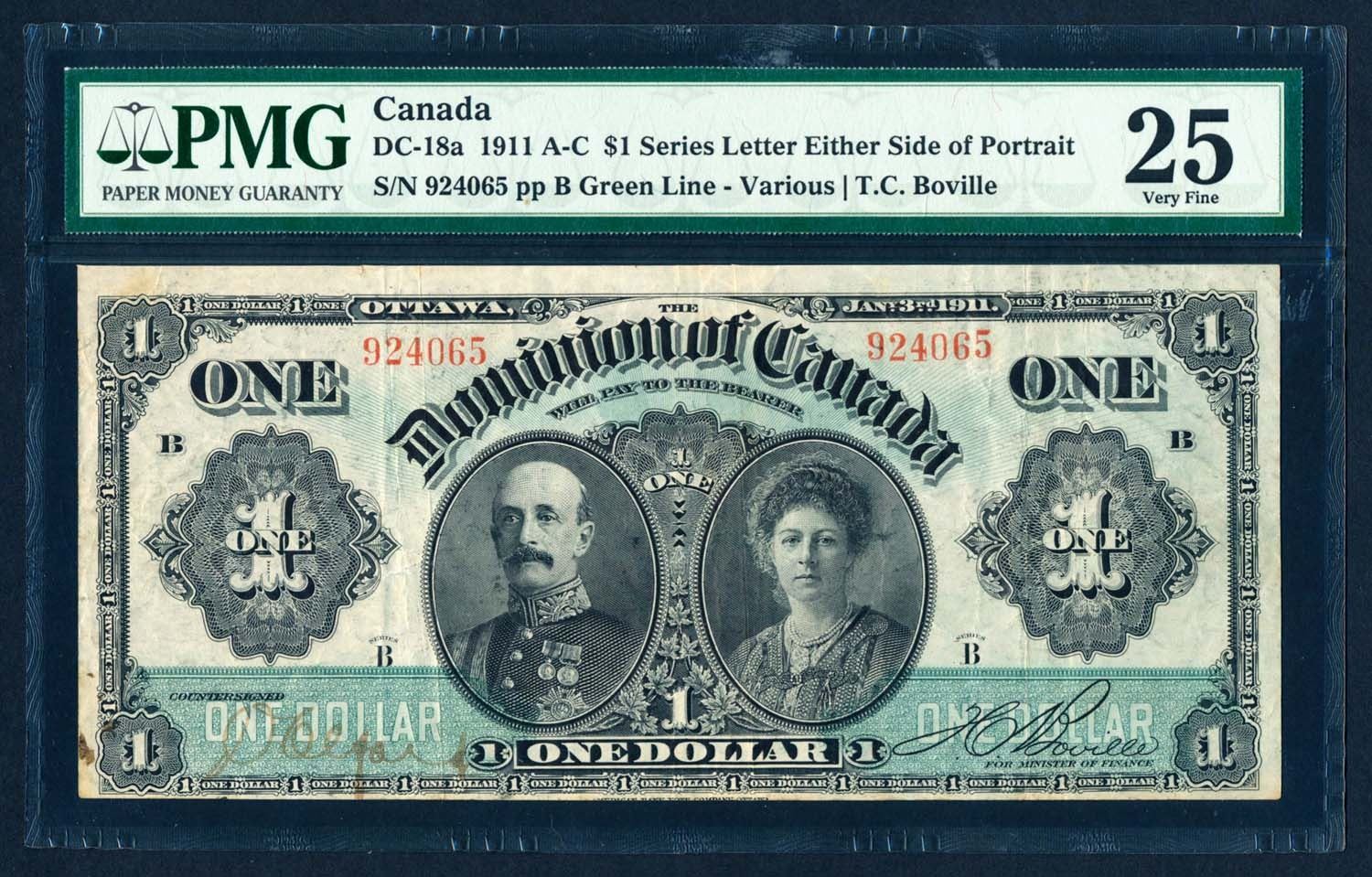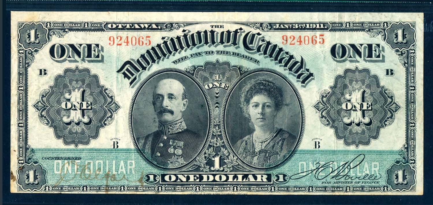 DOMINION OF CANADA 1911 $1.00 DC-18a Very Fine-25 Letter Either Side of Portrait