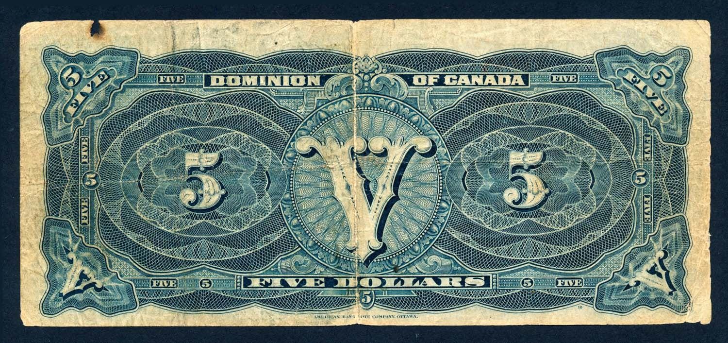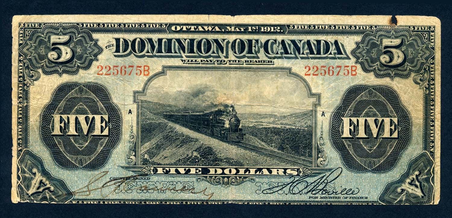 DOMINION OF CANADA 1912 $5.00 DC-21b Very Good +