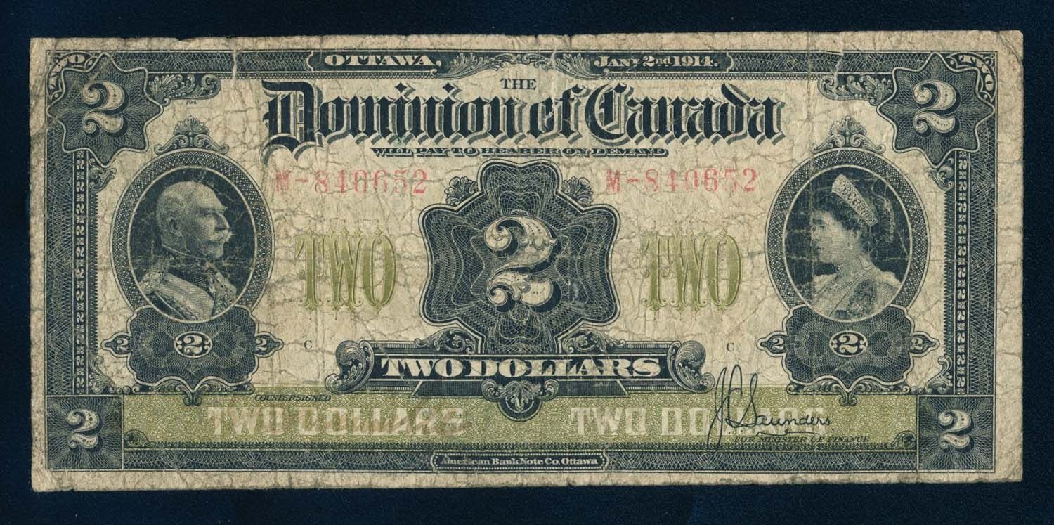 DOMINION OF CANADA 1914 $2.00 Position C 183 x 83 mm. DC-22c. Graded: VG