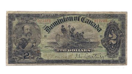 DOMINION OF CANADA. $2.00. July 2, 1897. DC-14a. Red-Brown back. Signed Courtney. No. 027229/B. PCGS graded Very Good-10. Minor edge tear at left.