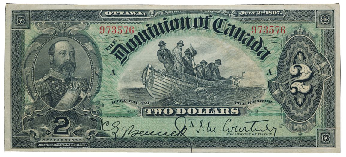 DOMINION OF CANADA. $2.00. July 2, 1897. DC-14b. No. 973576/A. Courtney. Red-Brown back. PMG graded Very Fine-25.