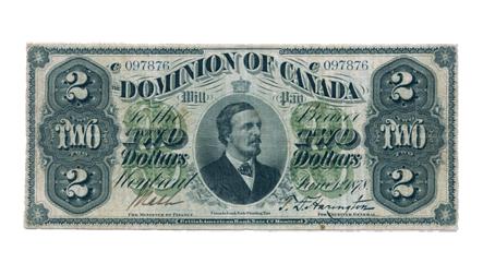 DOMINION OF CANADA. $2.00. June 1, 1878. DC-9a. Payable at Montreal. No. 097876/C. PCGS graded Fine-15. Bright and attractive.