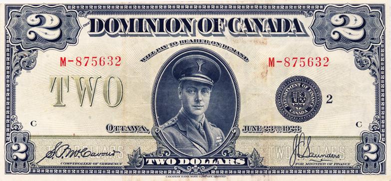 DOMINION OF CANADA. $2.00. June 23, 1923. DC-26f. Black Seal. No. M-875632/C. PCGS graded Very Fine-30.