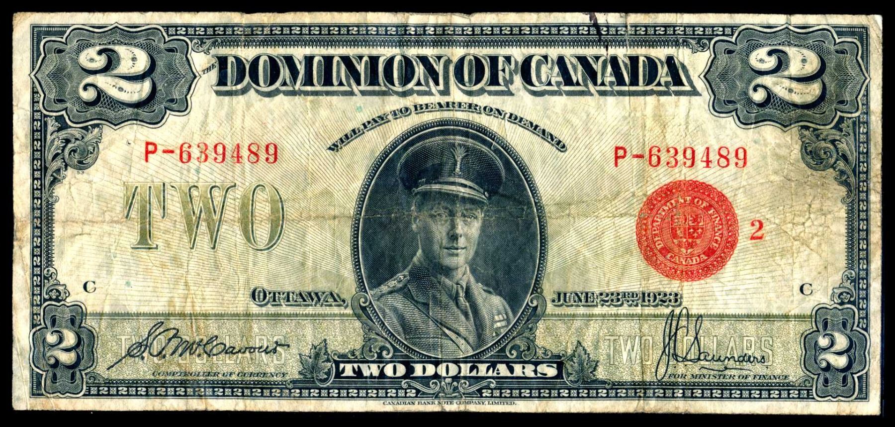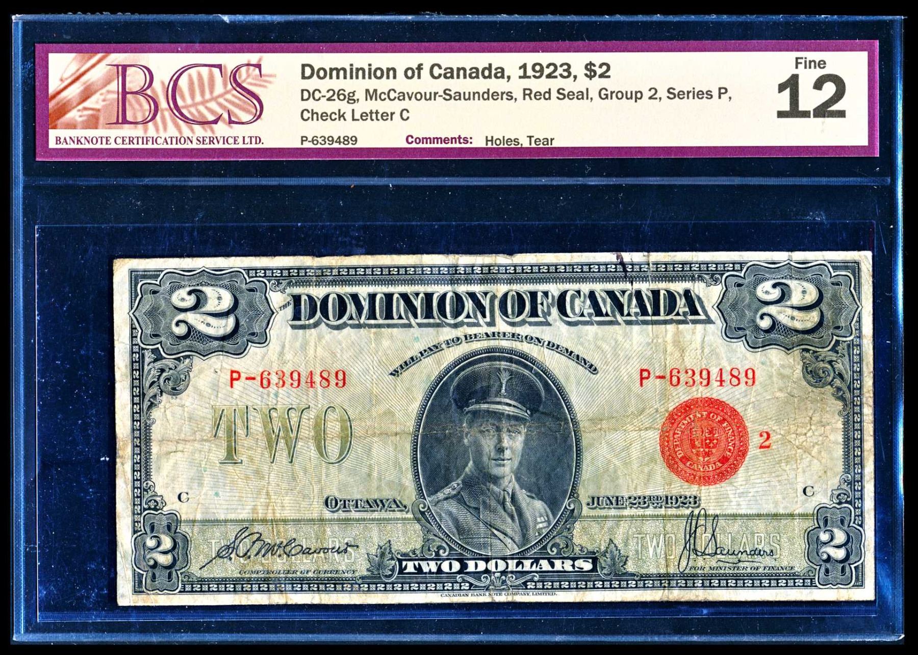DOMINION OF CANADA - 2 dollars 1923 DC-26g Red Seal Group 2 Series P - BCS F-12