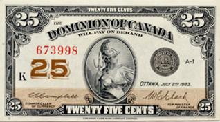 DOMINION OF CANADA. 25 CENTS. July 2, 1923. DC-24d. Campbell-Clark. No. 673998. Check Letter PMG graded AU-55.