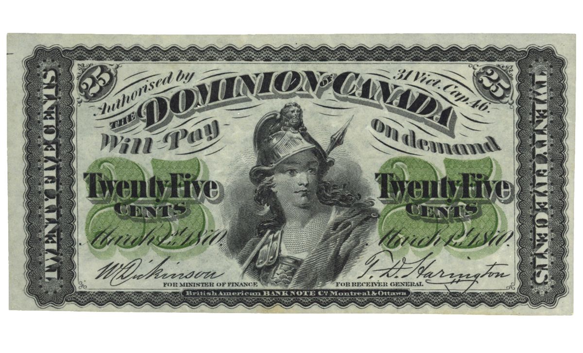 DOMINION OF CANADA. 25 CENTS. March 1, 1870. DC-1c. Plain. BCS Original graded Extra Fine-45.