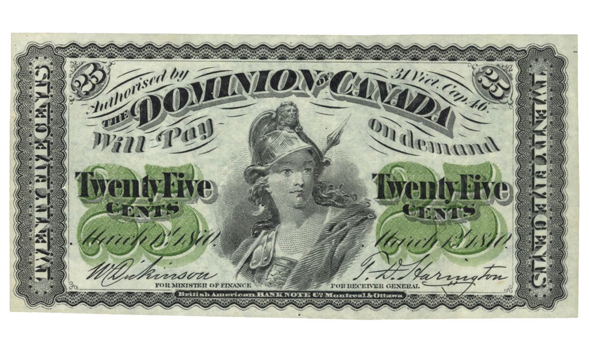 DOMINION OF CANADA. 25 CENTS. March 1, 1870. DC-1c. Plain. BCS gradedOriginal Extra Fine-40.