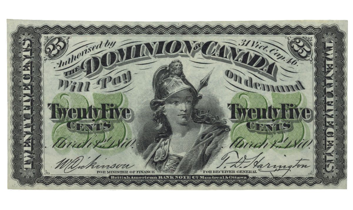 DOMINION OF CANADA. 25 CENTS. March 1, 1870. DC-1c. Plain. BCS graded Original Almost Uncirculated-55.