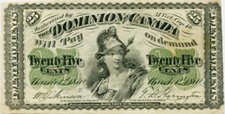 DOMINION OF CANADA. 25 Cents. March 1, 1870. DC-1b. Large ‘B’ Very Fine.