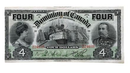 DOMINION OF CANADA. $4.00. Jan. 2, 1902. DC-17b. 'FOUR's'. No. 224609/D. A good Very Fine.