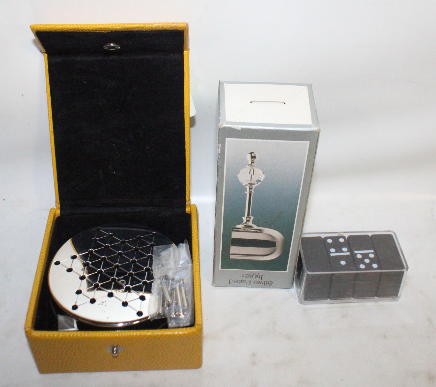 DOMINOES, SILVER PLATED JIGGER, STAR CRIB GAMES
