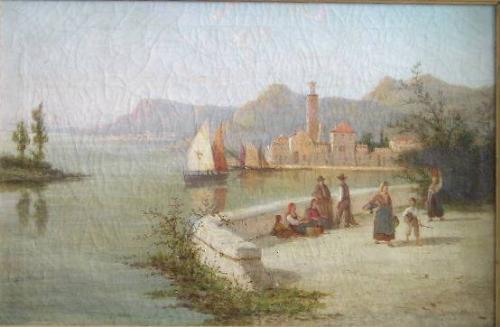 DOMMERSON, William, 1850-1927. "On the Lake of Como". Huile sur toile, signée. Titrée verso. École hollandaise. Oil on canvas, signed. Titled verso. Dutch School. 16" x 24" - 40.6cm x 61cm.