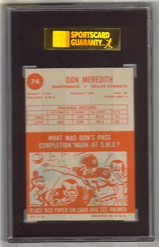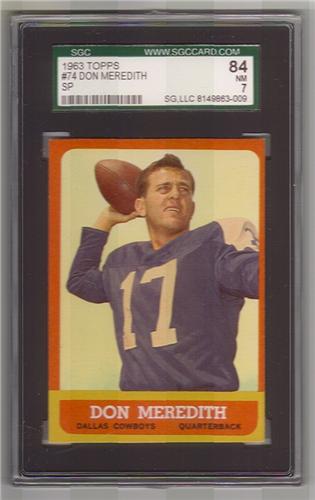 DON MEREDITH 1963 TOPPS FOOTBALL CARD. #74. Graded by SGC. 84. NM 7. 8149863-009.