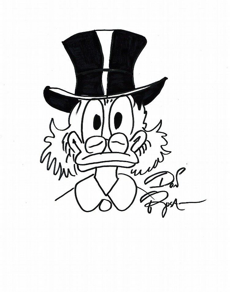 Don Rosa Walt Disney's Uncle Scrooge McDuck drawing. Cartoon's richest cartoon charactor! Don Rosa has inherited the mantle of The Good Duck Artist from his idol Carl Barks. his ink on paper sketch has an overall size of Image:9x7.5 inches. Boldly signed at the lower right. Supplied with coa. Condition: Very good.