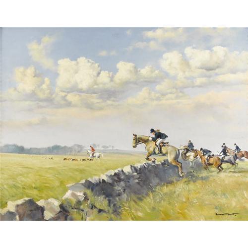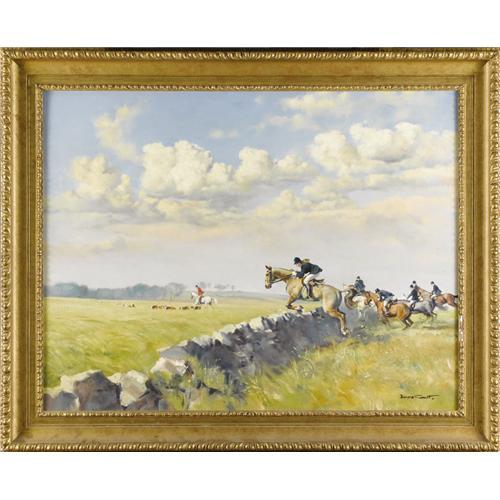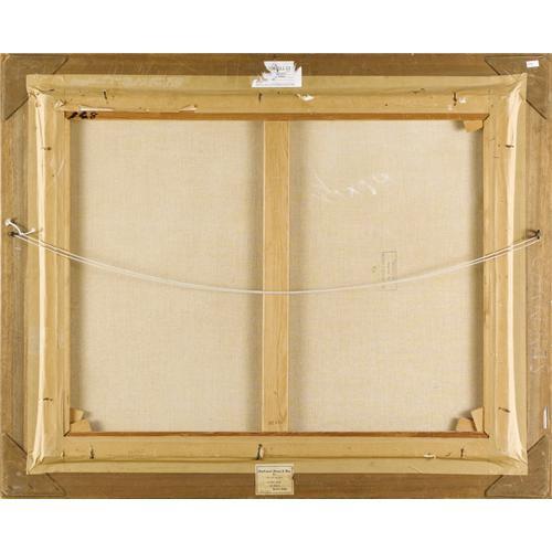 <B>DONALD GRANT</B></I> (British 1930-2001)<BR><I>Black Jackets High,</B></I> circa 1972<BR>Oil on canvas<BR>28 x 36 inches (71.1 x 91.4 cm)<BR>Signed lower right:<I> Donald Grant</B></I><BR><BR>Provenance:<BR>MacConnal-Mason & Sons, Ltd. (London, England);<BR>Alan Barnes Fine Art (Dallas, Texas);<BR>Private collection (Dallas, Texas)<BR><BR><BR><BR><b>Shipping:</b> Requires 3rd Party Shipping (<a target="_blank" href="http://www.heritageauctions.com/common/shipping.php">view shipping information</a>)