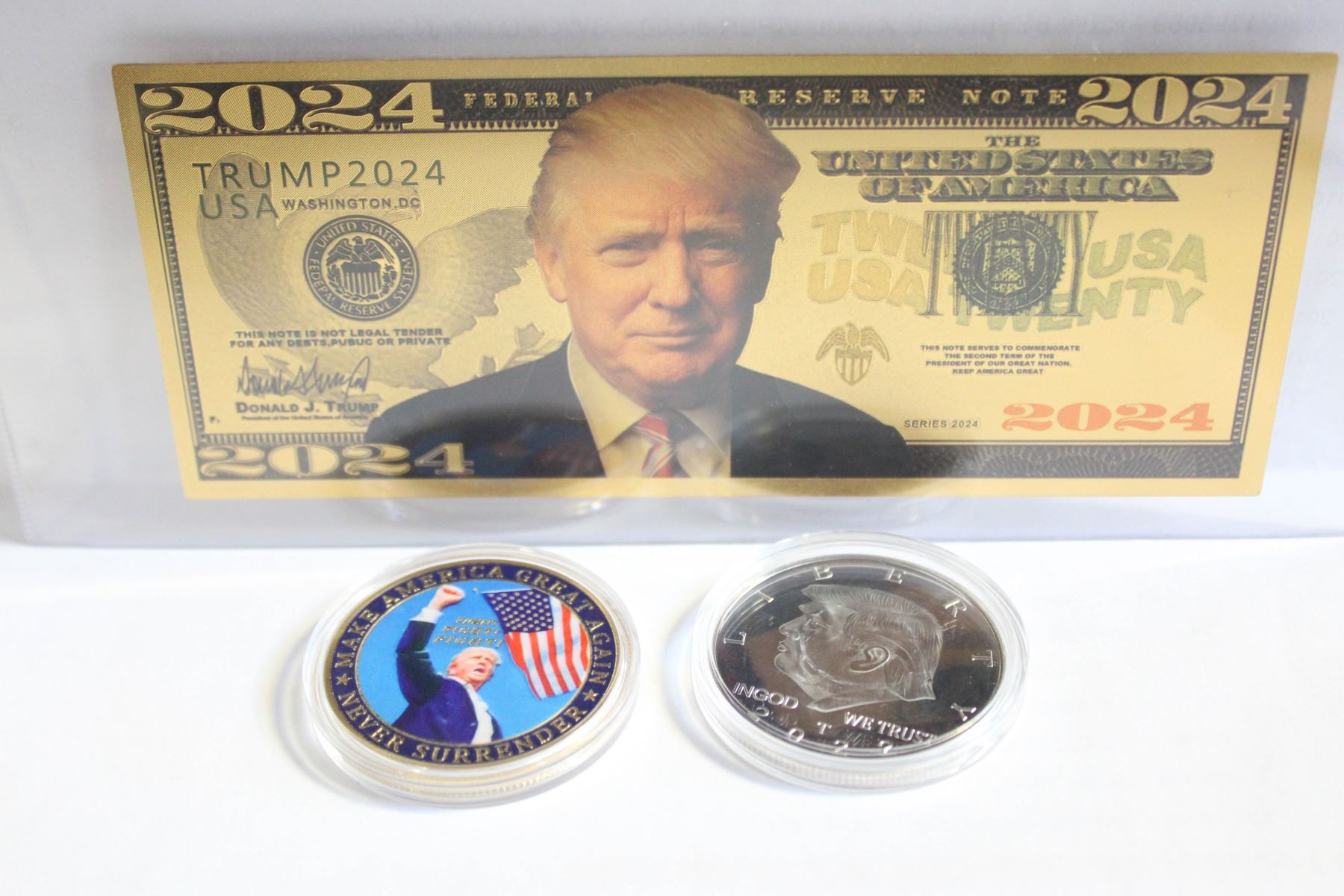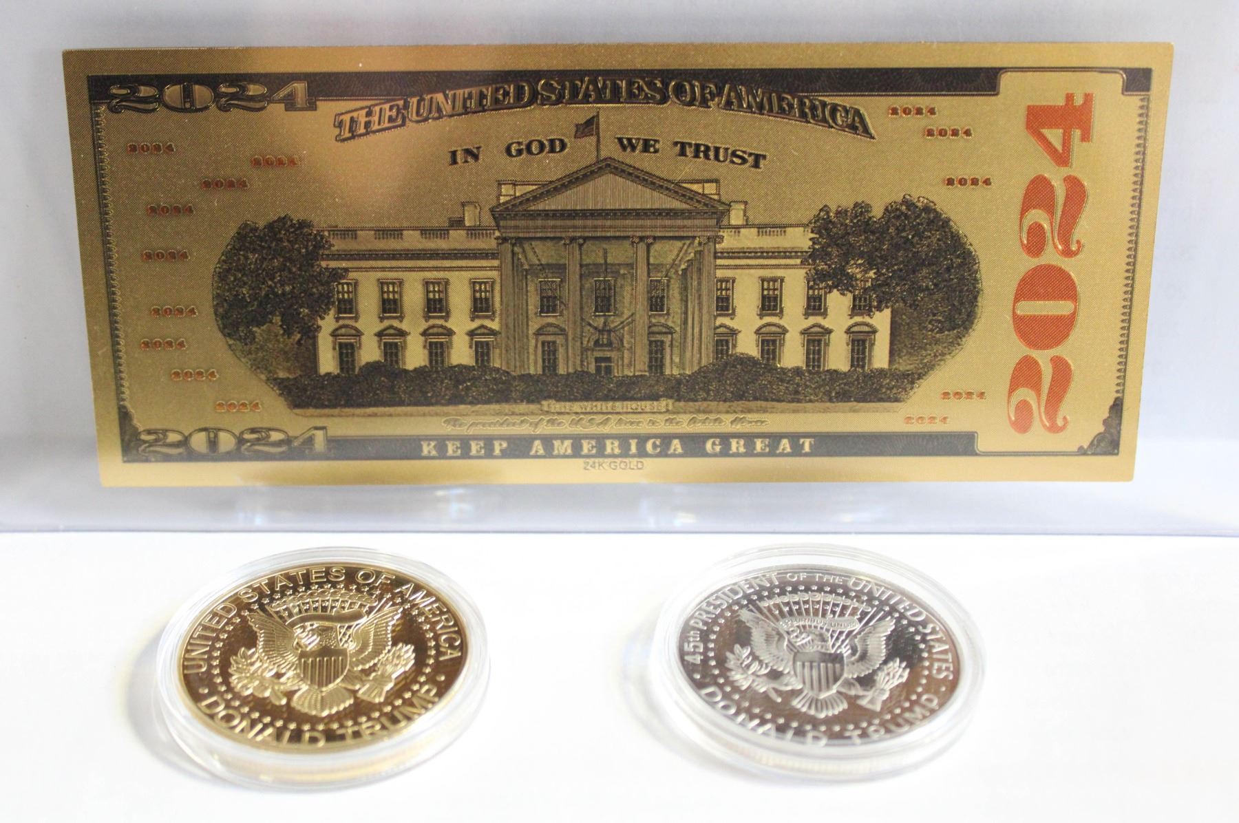 GOLD FOIL NOTE, SILVER COIN AND COLOURIZED GOLD COIN, ALL IN PROTECTIVE CASES