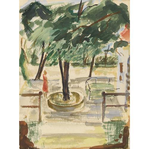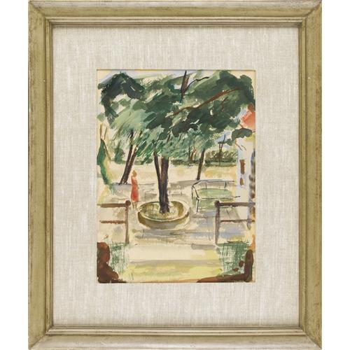 <B>DONALD VOGEL (1917-2004)</B></I><BR><I>Zoo Scene,</B></I> 1945<BR>Watercolor<BR>15in. x 11 1/4in.<BR>Unsigned, Valley House Gallery label and inventory number verso<BR><BR>An early Donald Vogel watercolor.<BR><BR>Provenance:<BR>Acquired by descent from the artist by the present owner<BR><BR> <B>Condition Report:</B> Excellent condition. Period frame in excellent condition.<BR><BR><b>Shipping:</b> Requires 3rd Party Shipping (<a target="_blank" href="http://www.heritageauctions.com/common/shipping.php">view shipping information</a>)