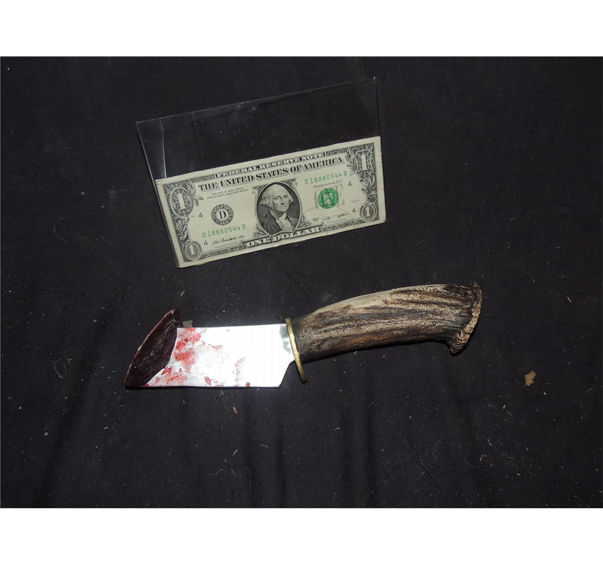 This is the antler knife used to stab someone in DONNER PASS, The film about the Donner party who became stranded, and turned into cannibals, then the modern day curse that follows.