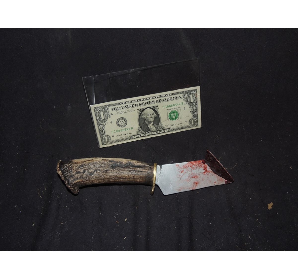 This is the antler knife used to stab someone in DONNER PASS, The film about the Donner party who became stranded, and turned into cannibals, then the modern day curse that follows.