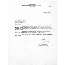 (d. 1993) American aviator who gained fame both as a racing pilot and as leader of the first air raid on Tokyo during World War II. Rare war-date T.L.S. "Jim" with fully-signed transmittal envelope, 1p. 4to., "Headquarters, Northwest African Strategic Air Force", July 21, 1943 to his famous fellow aviator, Roscoe Turner. Doolittle nonchalantly describes his combat missions, in part: "…Am getting in quite a bit of interesting cross country here. Was over Rome before yesterday. Didn't land. Clare and the rest of your friends here join me in sincere wishes…". Doolittle passed on landing in Rome - it was still in Axis hands! Very good. Doolittle is rare in war-date material.