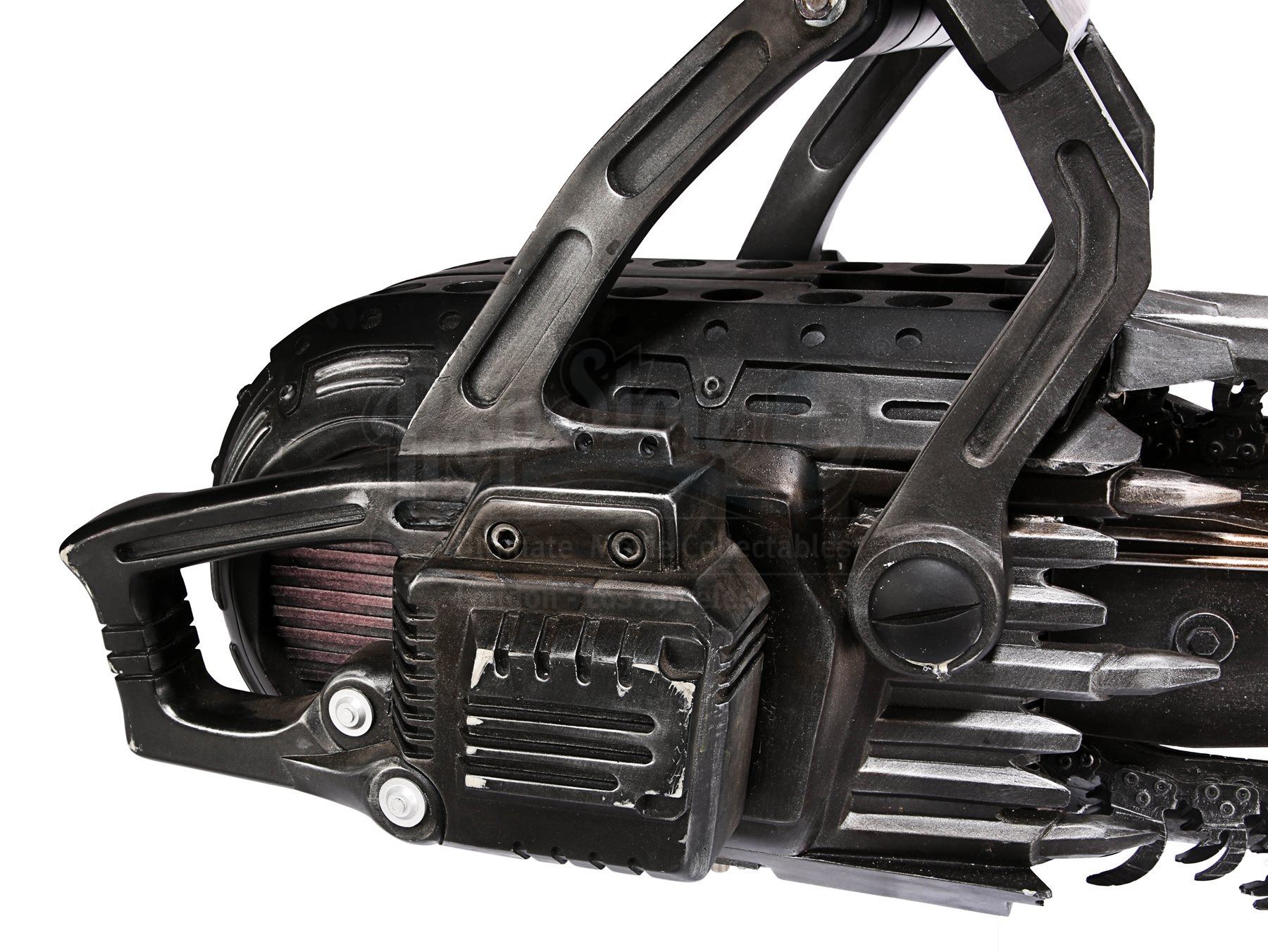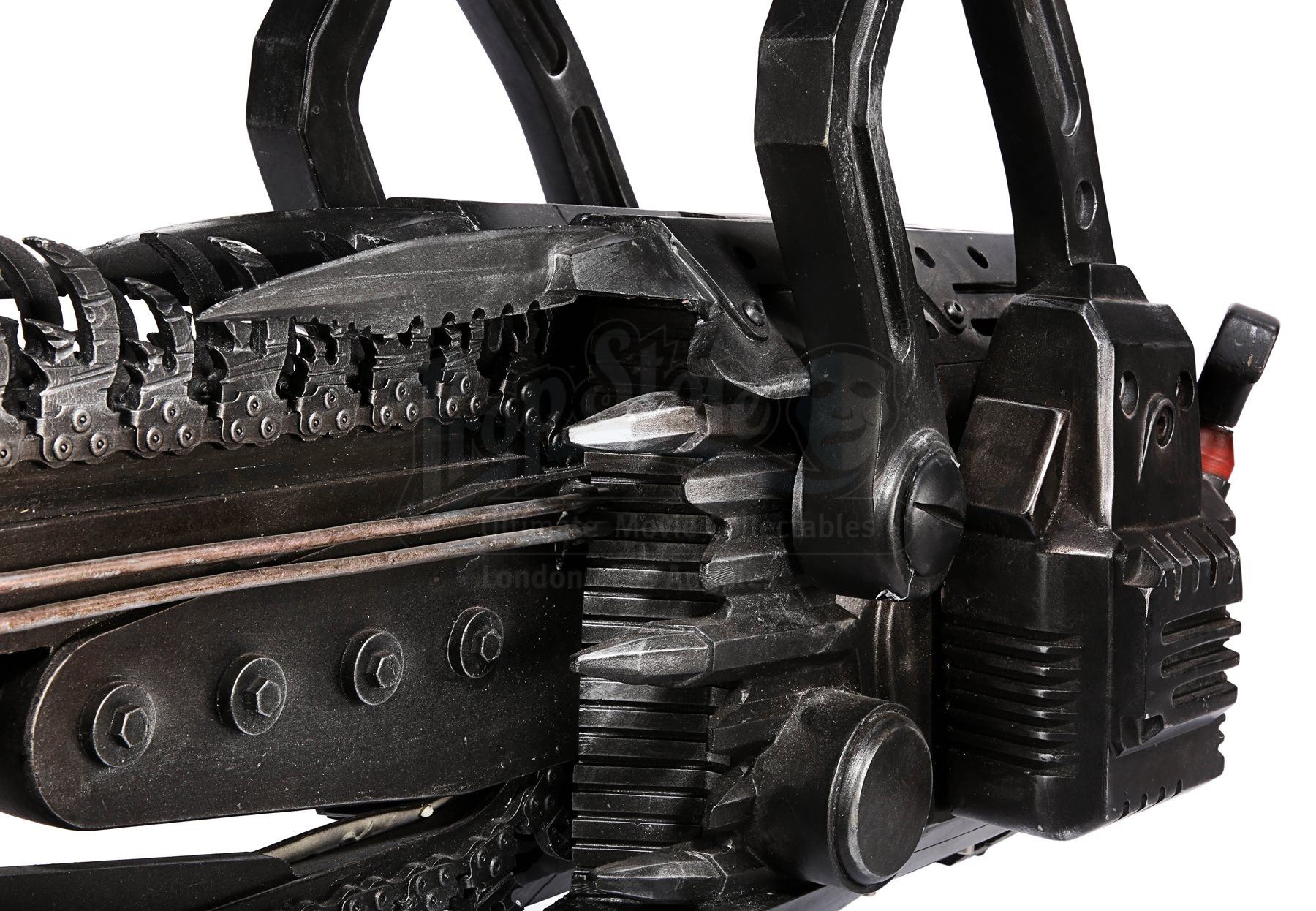 A chainsaw from Andrzej Bartkowiak’s action-horror video-game adaptation Doom. Chainsaws were seen on the wall of the Olduvai mines, with John Grimm (Karl Urban) taking the weapon to kill the demonic Pinky (Dexter Fletcher).
