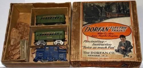 DORFAN O GAUGE PASSENGER SET. LOCO IS A POSSIBLE REPAINT. CARS ARE ORIGINAL.