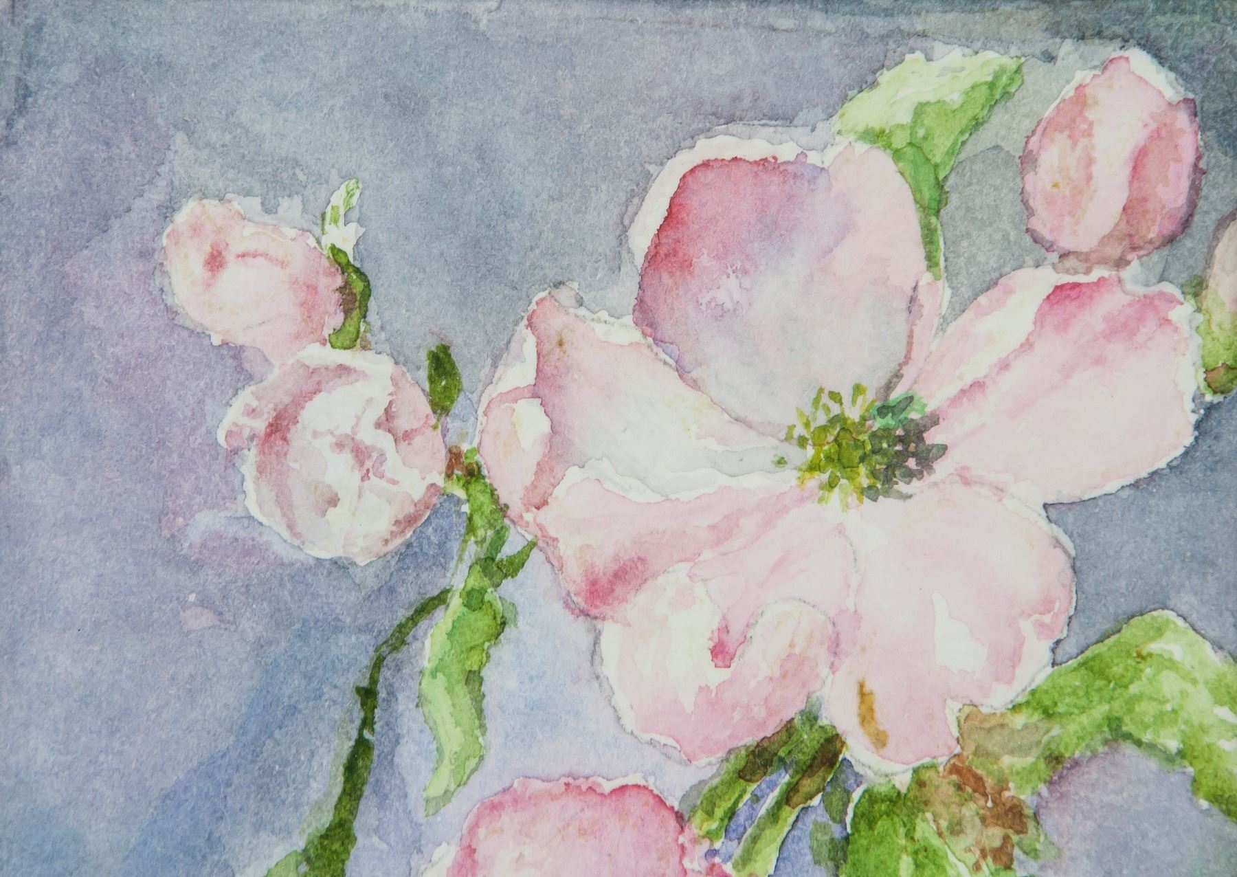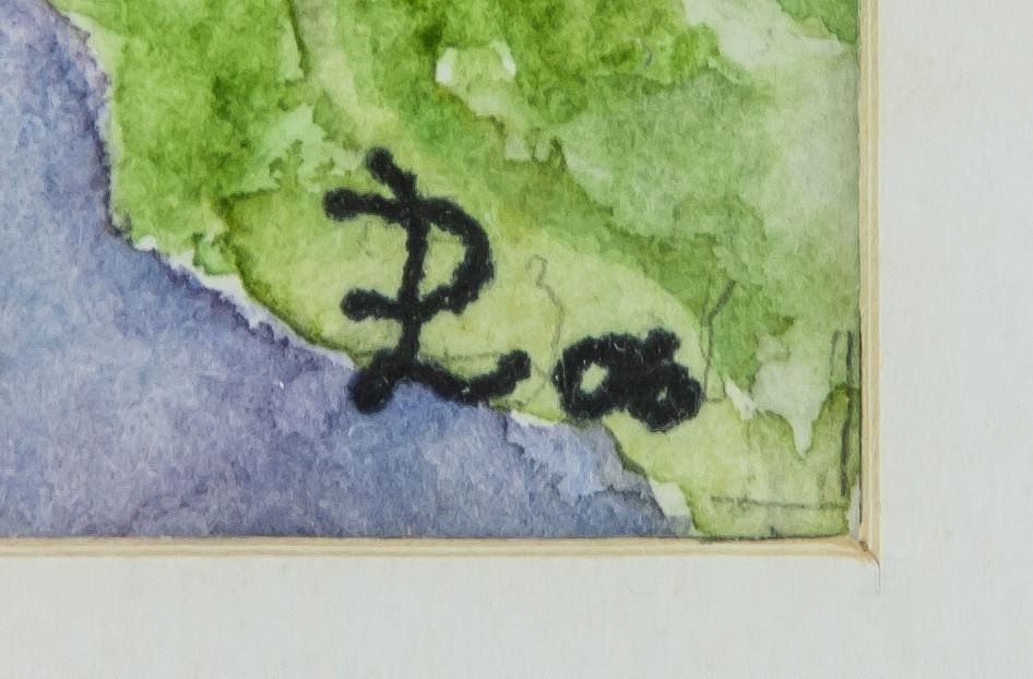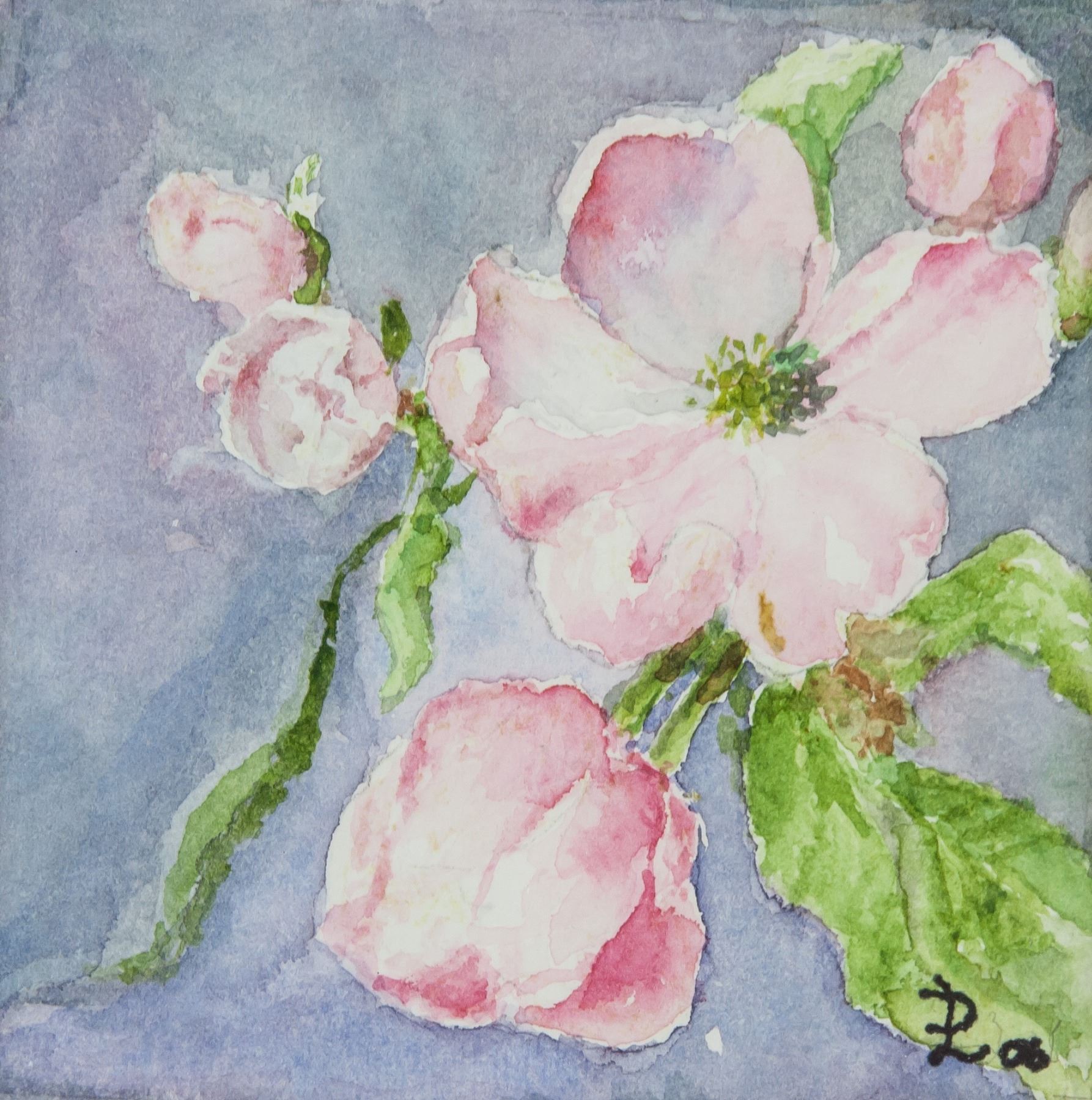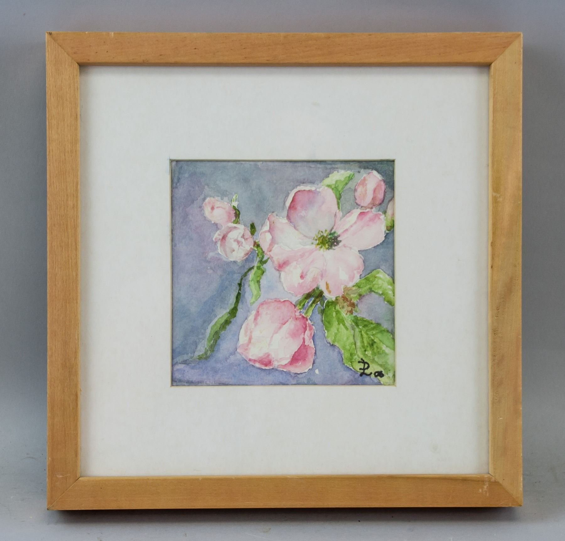 Watercolor on paper. Featuring a pink flowers painting. Signed Dori Leisinger (Canadian, 1925-2011) on the lower right corner. Dated 2006. 12 x 12 cm (4.7 x 4.7 inches). Dori Leisinger was a local artist and sold most of her paintings through art shows. She was an avid photographer and worked on different subjects. She worked on landscapes most of all and experimented with different styles, mediums, and techniques. PROVENANCE: Private estate (Stouffville, Ontario)