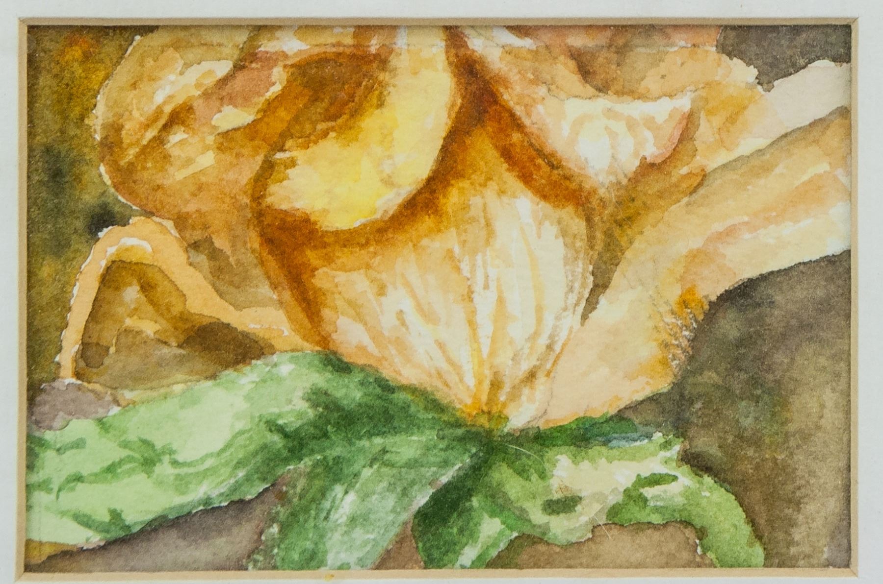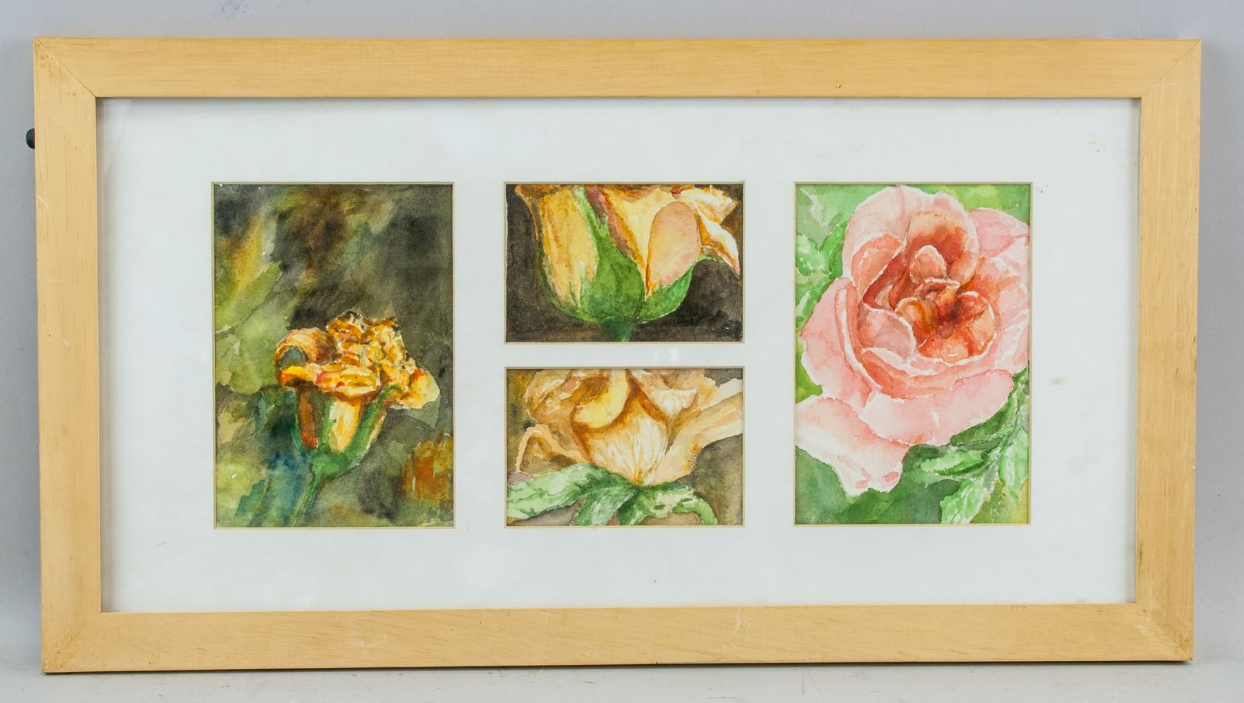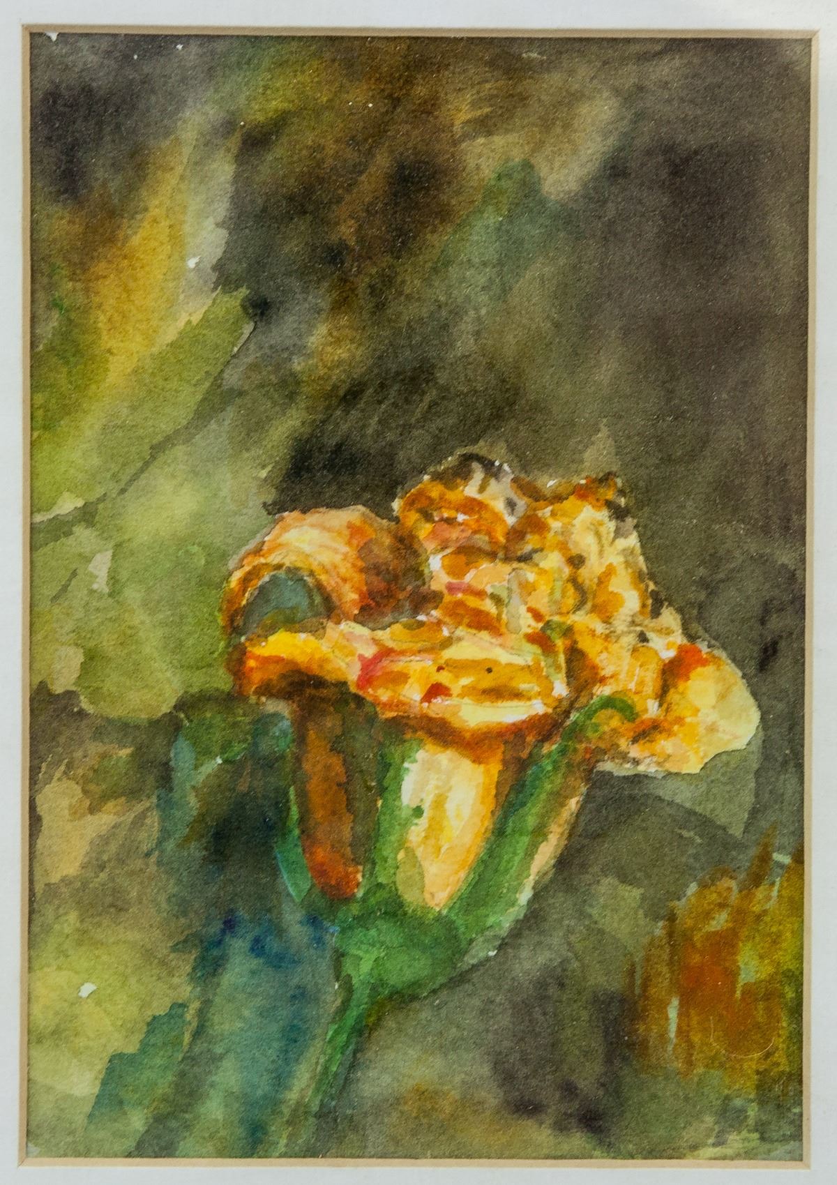Watercolor on paper, framed. Featuring still of flowers. Dori Leisinger (Canadian, 1925-2011) on the lower right corner. 16.5 x 39 cm (6.5 x 15.4 inches). Dori Leisinger was a local artist and sold most of her paintings through art shows. She was an avid photographer and worked on different subjects. She worked on landscapes most of all and experimented with different styles, mediums, and techniques. PROVENANCE: Private estate (Stouffville, Ontario)