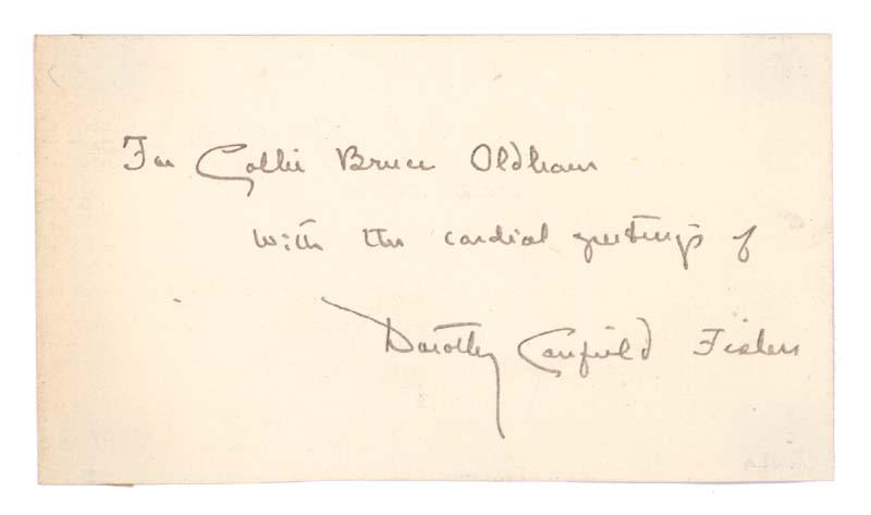 Dorothy Canfield Fisher (February 17, 1879 – November 9, 1958) was an educational reformer, social activist, and best-selling American author in the early decades of the Twentieth century. Signed card.