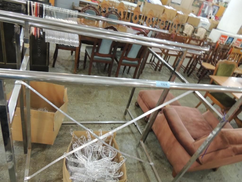 DOUBLE BAR ADJUSTABLE CLOTHES RACK TWO ROD WITH BOX HANGERS. STURDY. AS SHOWN SEE PHOTO FOR MORE DETAILS.