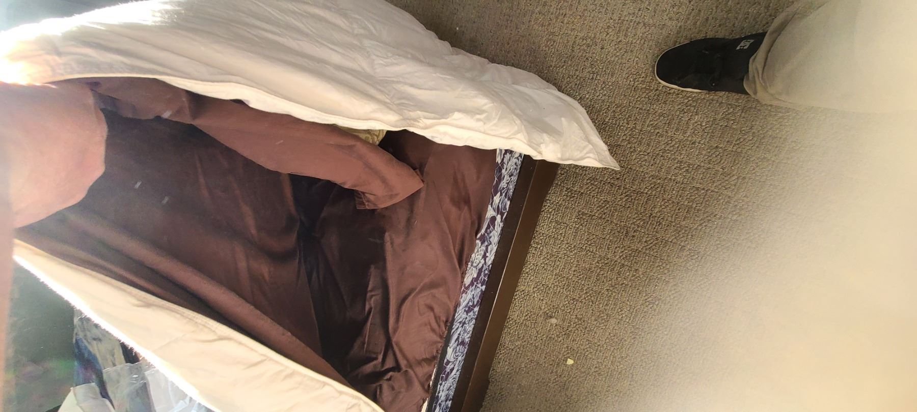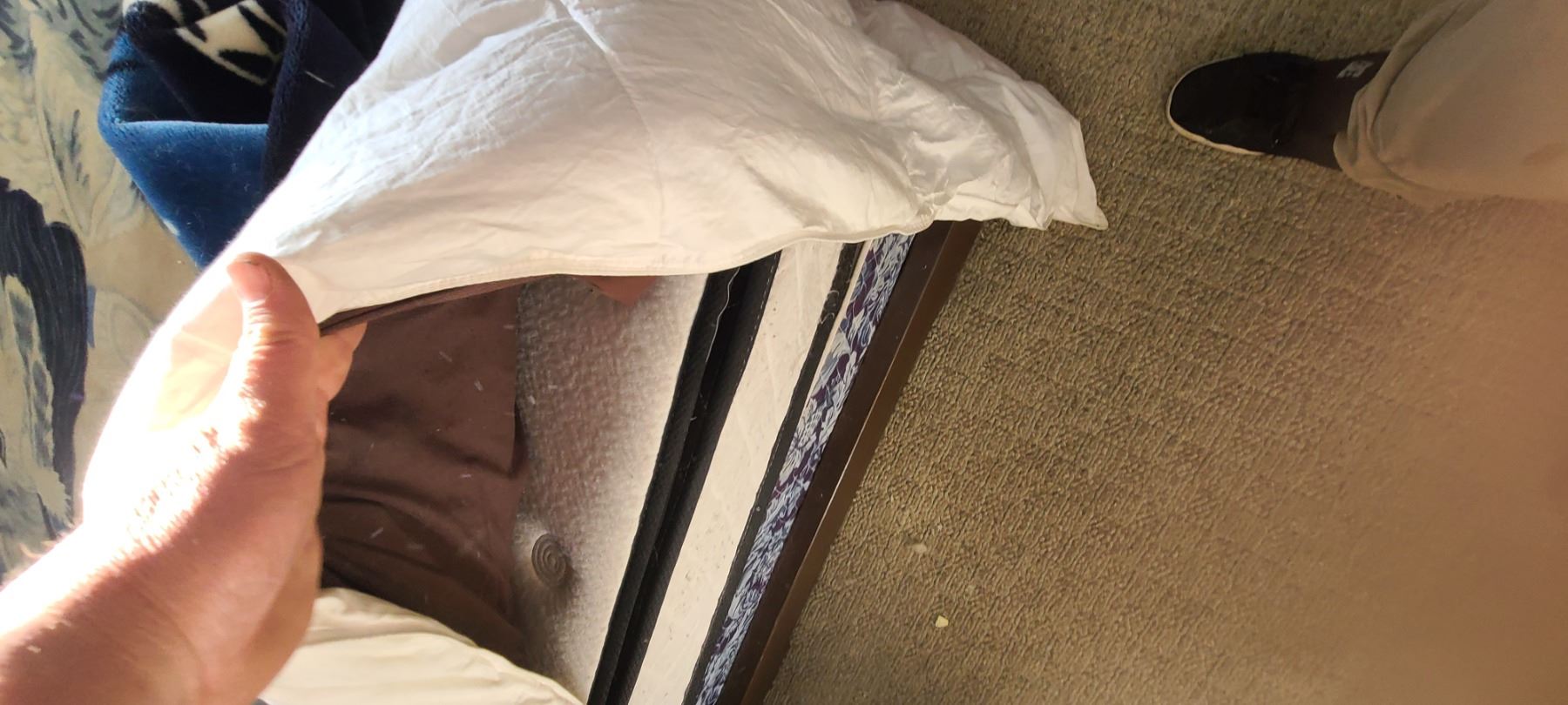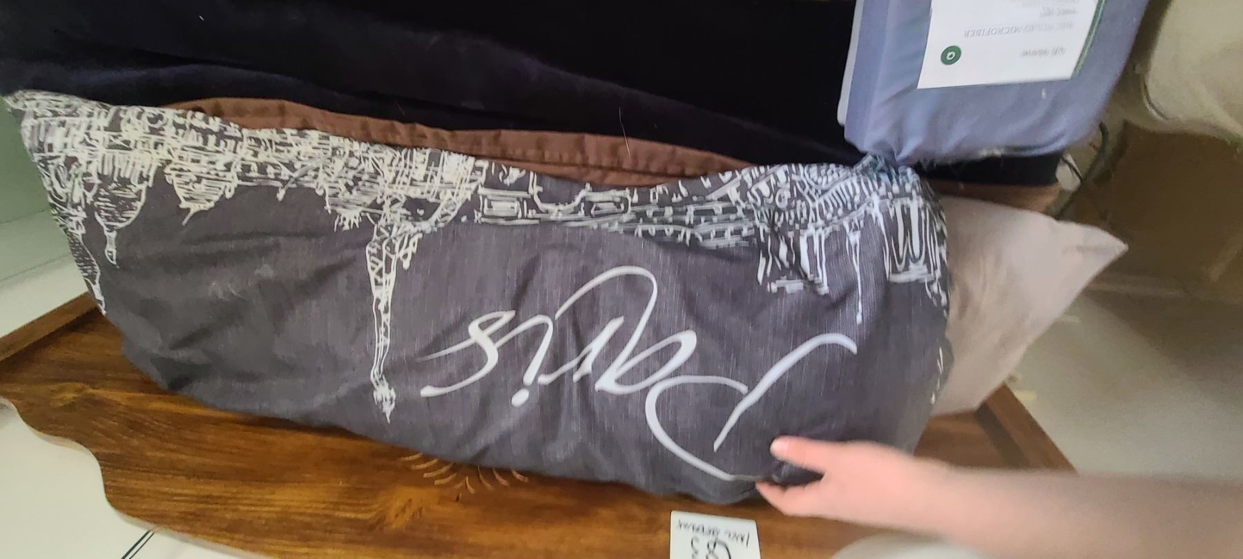 DOUBLE BED - HEAD BOARD, PILLOW, AND BEDDING