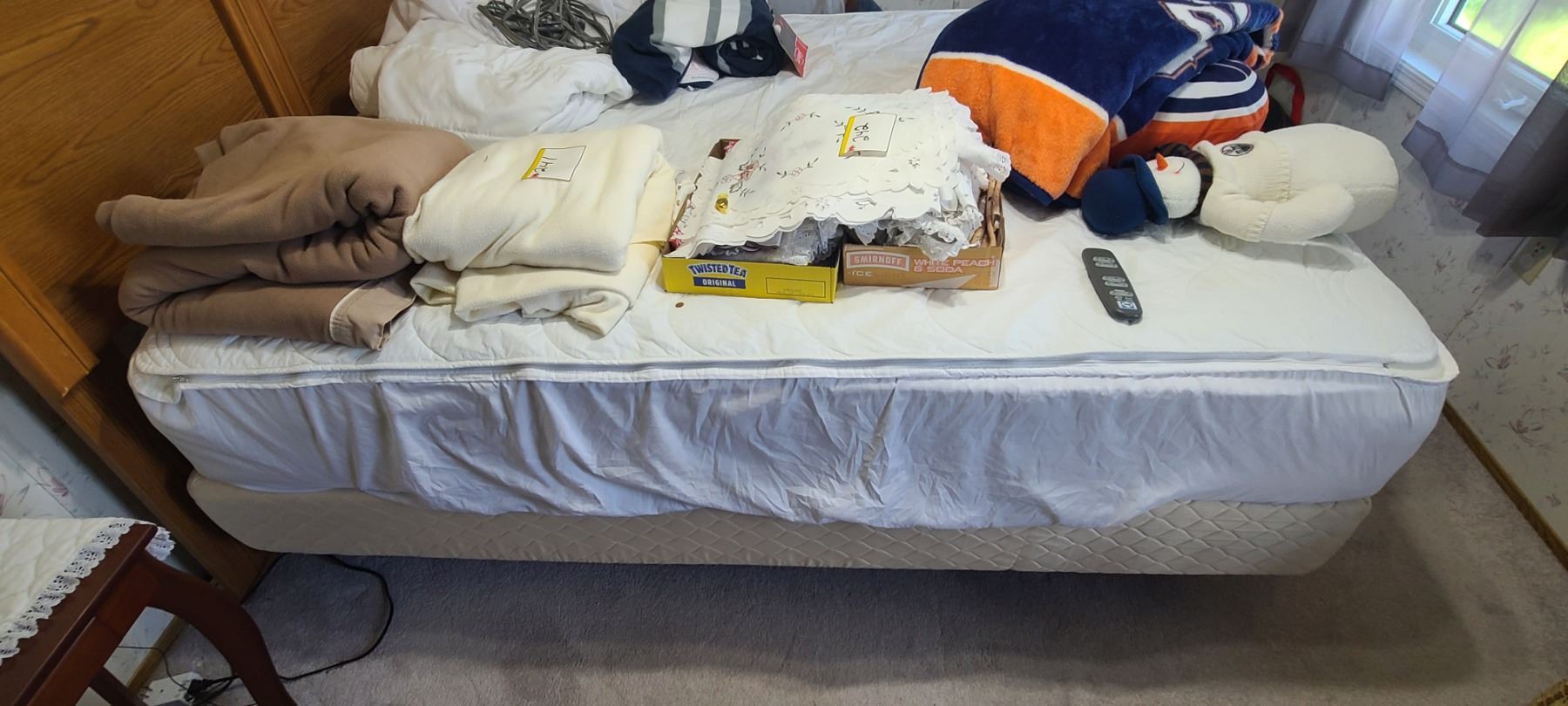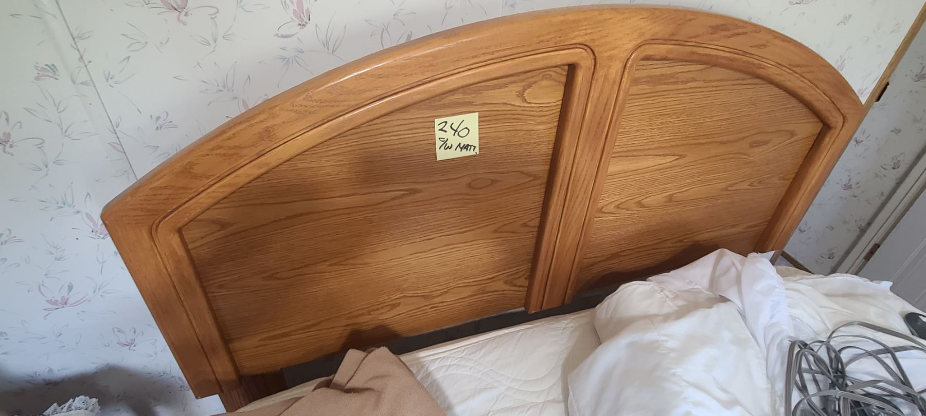 DOUBLE BED WITH OAK HEADBOARD AND A BOX SPRING